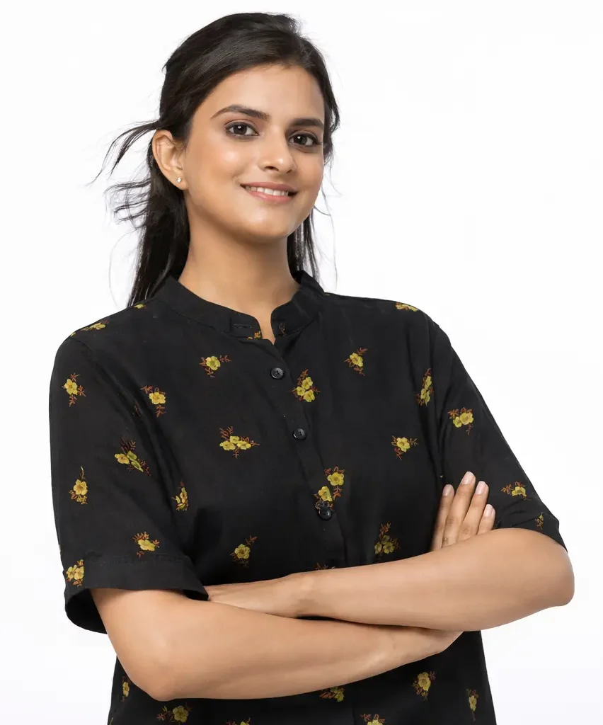 Women’s Floral Embroidered Collared Top – Soft Cotton Casual Shirt